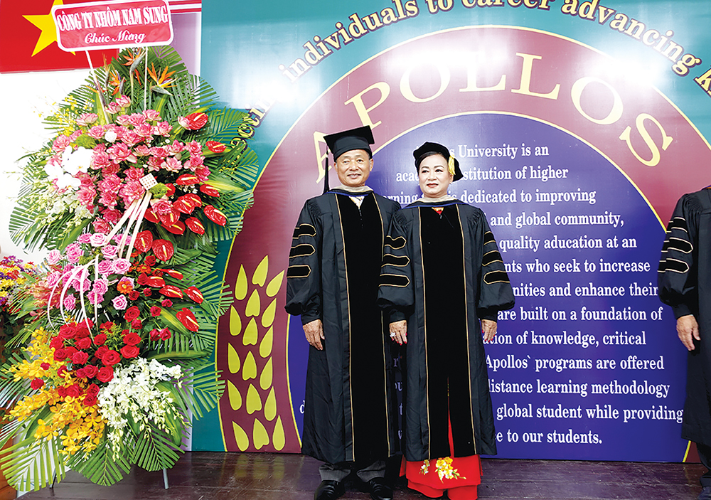 Đại học Apollos được thành lập vào tháng 8/2004, là một tổ chức học thuật giáo dục bậc cao nhằm cải thiện cuộc sống, phục vụ cộng đồng địa phương và toàn cầu. Đây được coi là nơi cung cấp nền giáo dục chất lượng cao nhất. Tại Việt Nam, danh hiệu Tiến sĩ danh dự được trao là những người có tầm ảnh hưởng trong nhất định xã hội. Danh hiệu Tiến sĩ danh dự chắc chắn là động lực để doanh nhân Trần Thị Huấn tiến xa hơn nữa trên thương trường, đưa Nam Sung trở thành thương hiệu Việt nổi danh muôn phương.