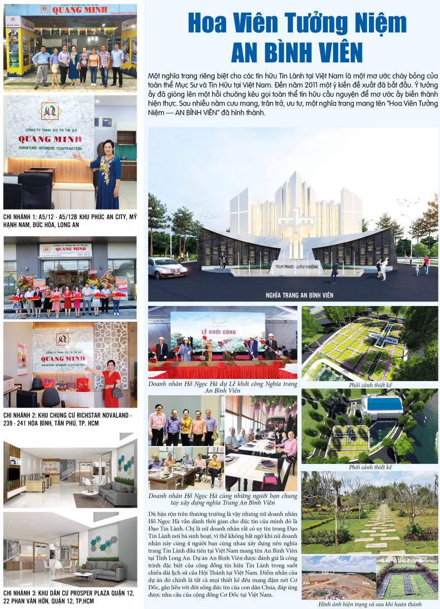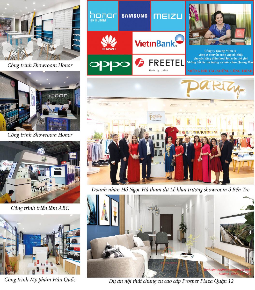 Năm 2019 được cho là năm bứt phá trong chiến lược kinh doanh của Công ty Quang Minh dưới sự dìu dắt của nữ Chủ tịch Hồ Ngọc Hà. Với chị, mỗi thời điểm đều có những thuận lợi đi kèm bất lợi trong kinh doanh nhưng đứng trước sự cạnh tranh khốc liệt của thị trường, chị không bao giờ khuất phục. Kinh nghiệm, bản lĩnh, kiên trì là những điểm mạnh giúp chị lãnh đạo doanh nghiệp của mình phát huy thế mạnh, vượt qua thử thách.