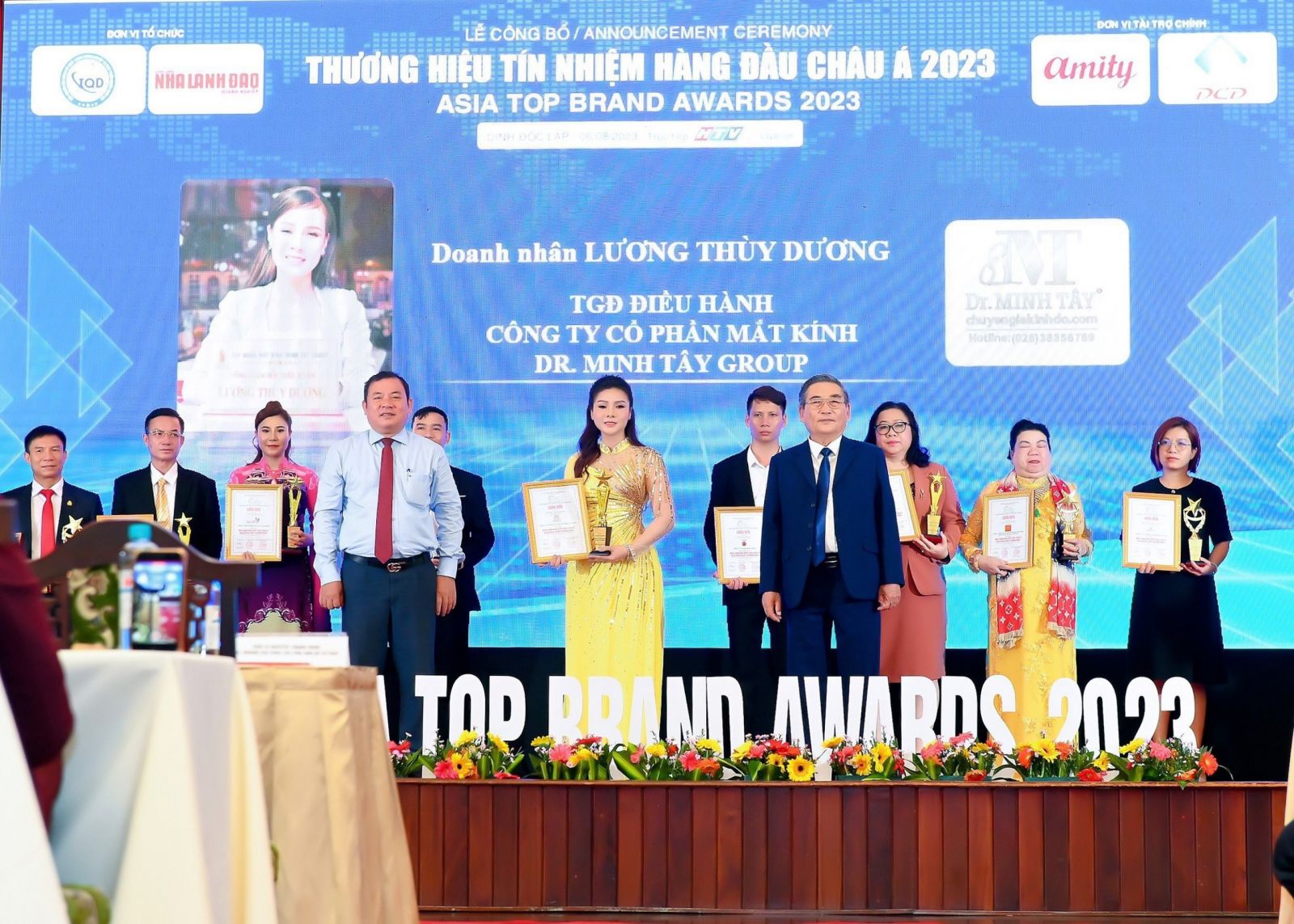 Trong buổi lễ vinh danh doanh nhân doanh nghiệp tại hội trường Thống Nhất Dinh Độc Lập ngày 6/8 vừa qua, Công Ty Cổ Phần Mắt Kính Dr. Minh Tây đã rất xuất sắc lập được cú đúp khi nhận được hai giải thưởng: “Nhà Lãnh Đạo Xuất Sắc Châu Á – Asia Excellent Leader 2023” dành cho doanh nhân Lương Thùy Dương – Nhà sáng lập kiêm Tổng giám đốc hệ thống và giải thưởng “Sản Phẩm & Dịch Vụ Chất Lượng Châu Á – Products Asia Quality Services 2023” dành cho Công ty. Chương trình do Viện Nghiên Cứu Đánh Giá Chất Lượng Doanh Nghiệp Và Phát Triển Nguồn Nhân Lực Cùng Viện Khoa Học Quản Trị Doanh Nghiệp Phương Nam Và Diễn Đàn Nhà Lãnh Đạo Doanh Nghiệp phối hợp tổ chức, được truyền hình trực tiếp trên HTV1 – Đài truyền hình Thành phố Hồ Chí Minh.