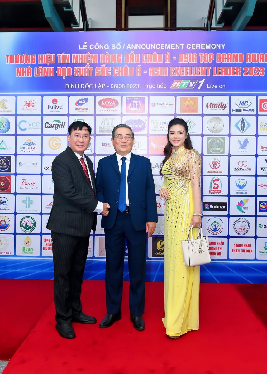 Tiến Sĩ Nguyễn Thanh Bình – Cục Trưởng Cục Công Tác Phía Nam – Bộ Tư Pháp và Tiến Sĩ Bùi Sông Thu – Viện Trưởng Viện Nghiên Cứu Đánh Giá Chất Lượng Doanh Nghiệp Và Phát Triển Nguồn Nhân Lực trao chứng nhận vinh danh Nhà Lãnh Đạo Xuất Sắc Châu Á cho doanh nhân Lương Thùy Dương